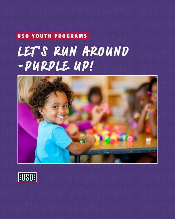 Join the USO as we celebrate Purple Up Day in honor of our amazing military children! Wear your purple and come enjoy an evening of fun, laughter, and play while connecting with other military families.
